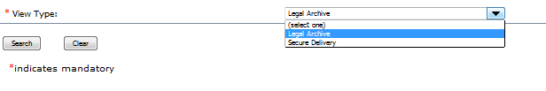 9 Select the View Type, either Legal Archive or Secure Delivery.