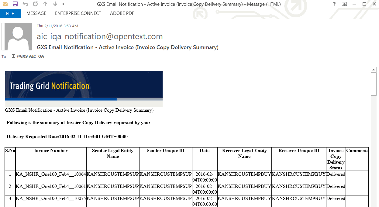The system notifies the sender by email when an invoice (or multiple invoices) is redelivered.