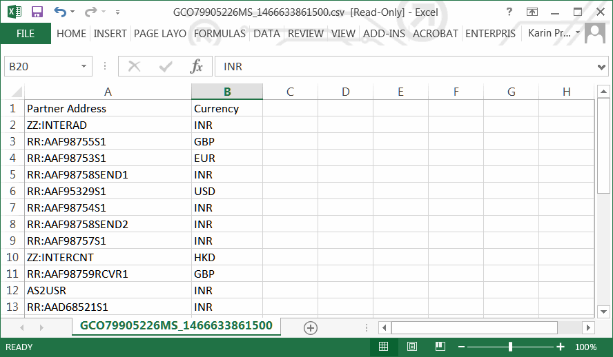 2 Click Download File: List of partners to set default currency to generate a .csv file.